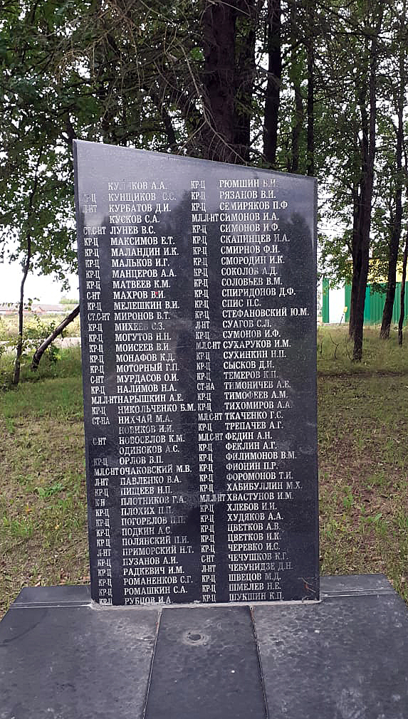 Из акта захоронения 2 стрелкового батальона 150 стрелкового полка 11-й стрелковой дивизии войск НКВД от 16.01.1942 года. Погибли в бою 29 декабря 1941 года. Похоронены в братской могиле за Нарскими прудами у деревни Софьино Одинцовского района.