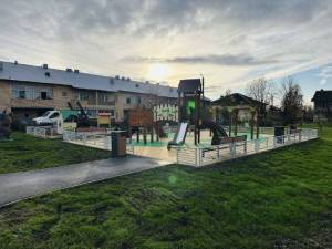 По всем объектам демонтировано основание и старые игровые формы, уложено новое безопасное покрытие из резиновой крошки с бордюрами и, конечно же, были установлены яркие современные игровые элементы.