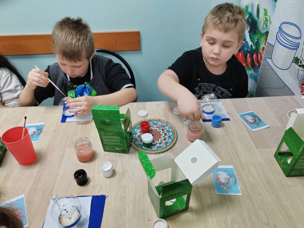 Закончилось путешествие мастер-классом, на котором ученики расписали новогодний шар.
