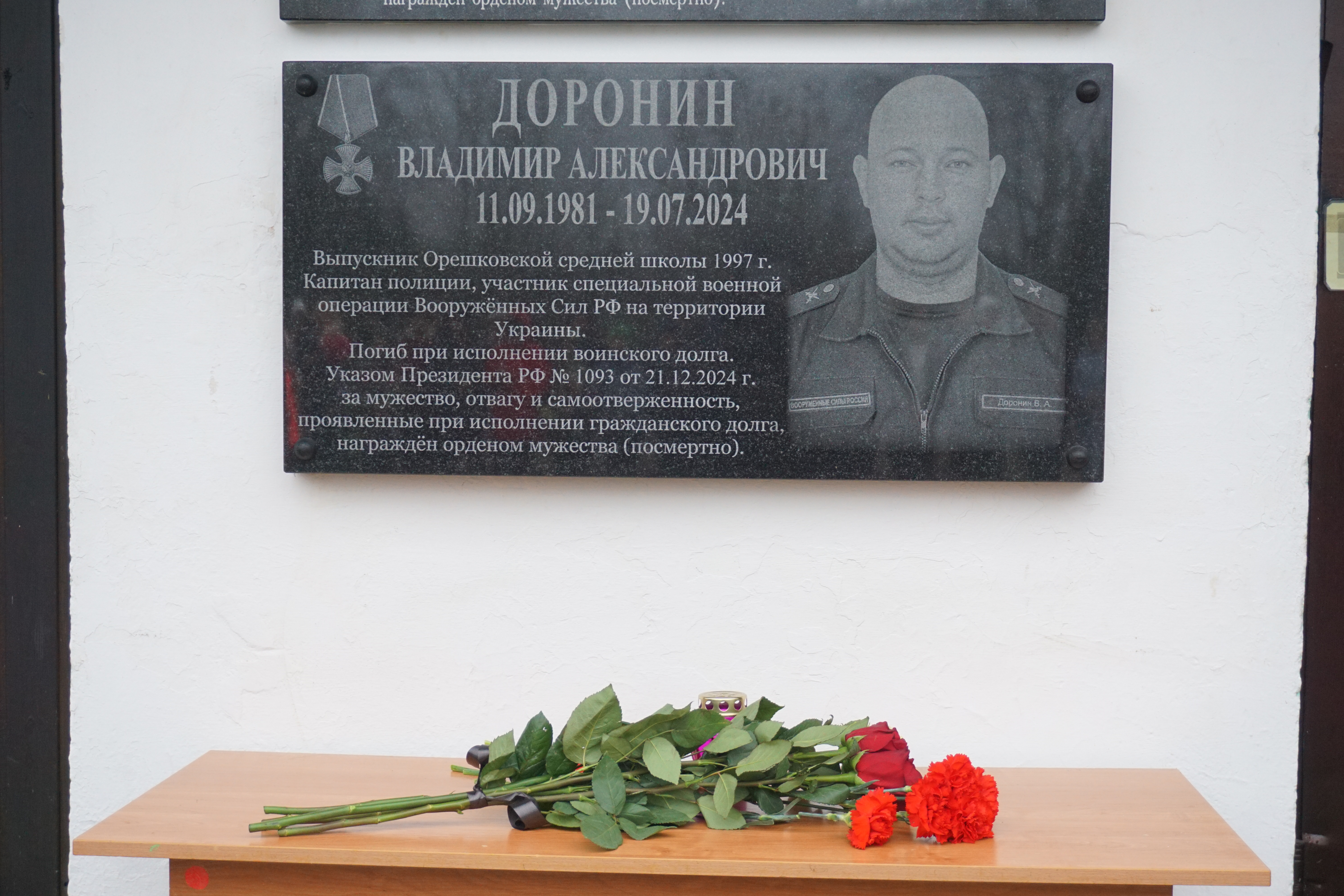 В деревне Орешки открыли памятную доску доблестному защитнику Родины, участнику специальной военной операции, капитану полиции Владимиру Александровичу Доронину.