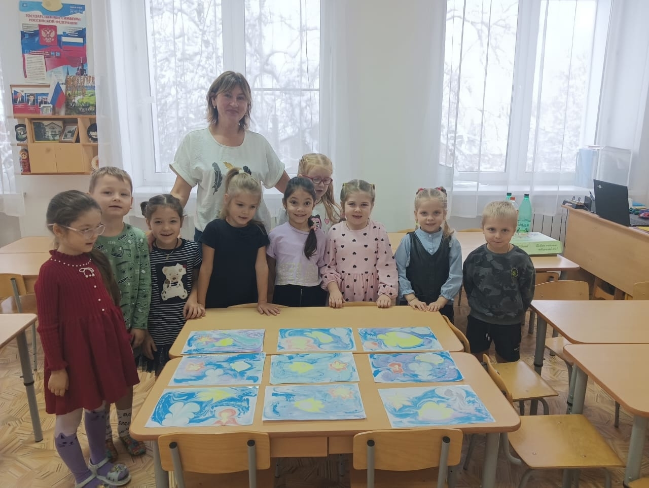 В рамках реализации регионального проекта «Предшкола: стандарт детского сада» на тематической неделе «Творческая лаборатория» в дошкольном отделении Рузской школы №2 ребята из подготовительной группы ознакомились с новым способом рисования «Эбру».