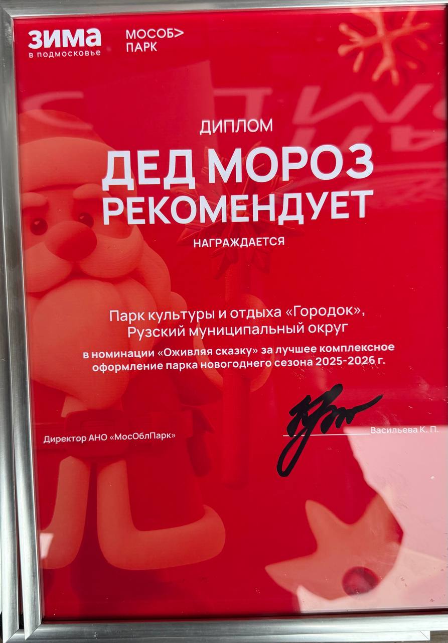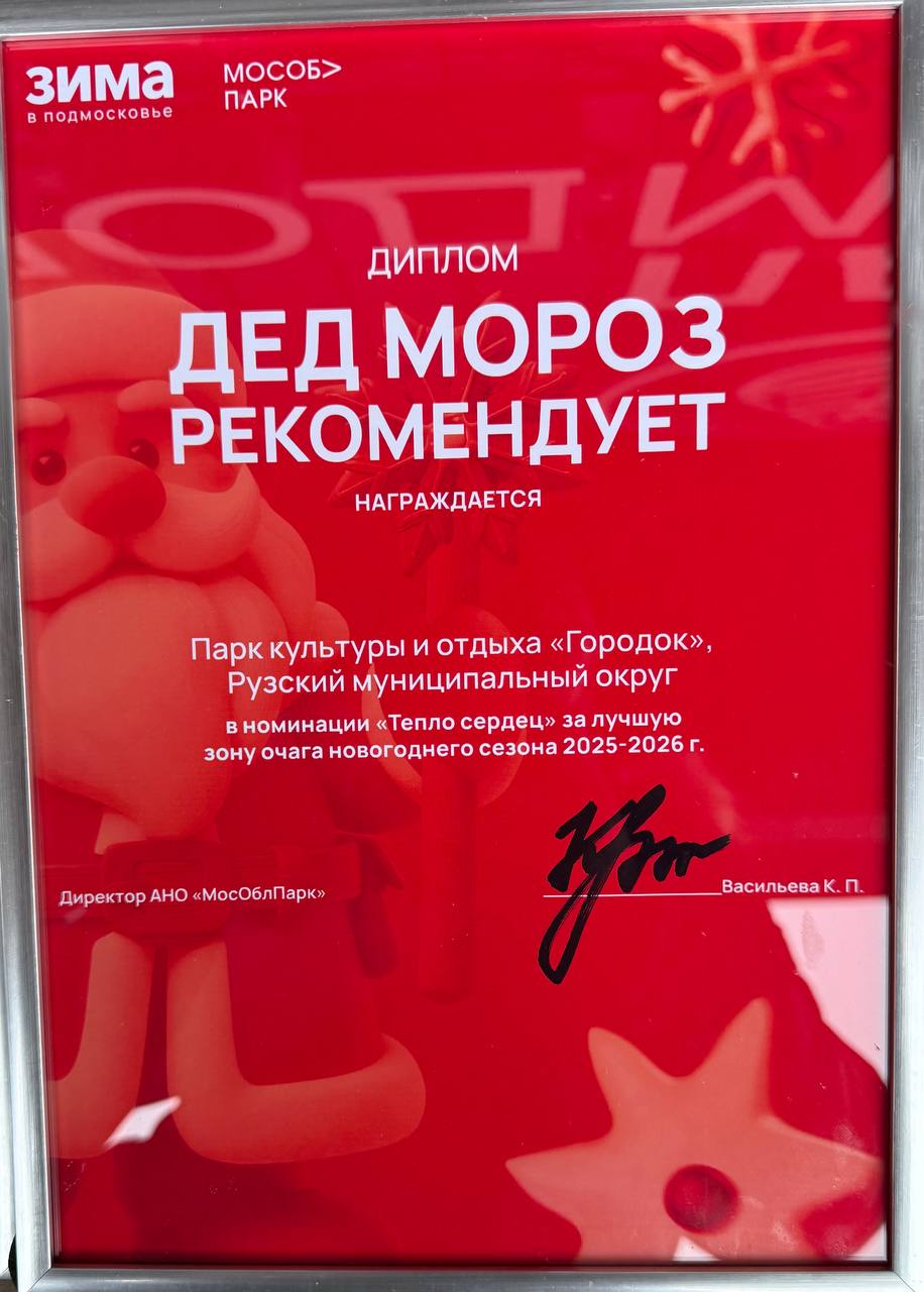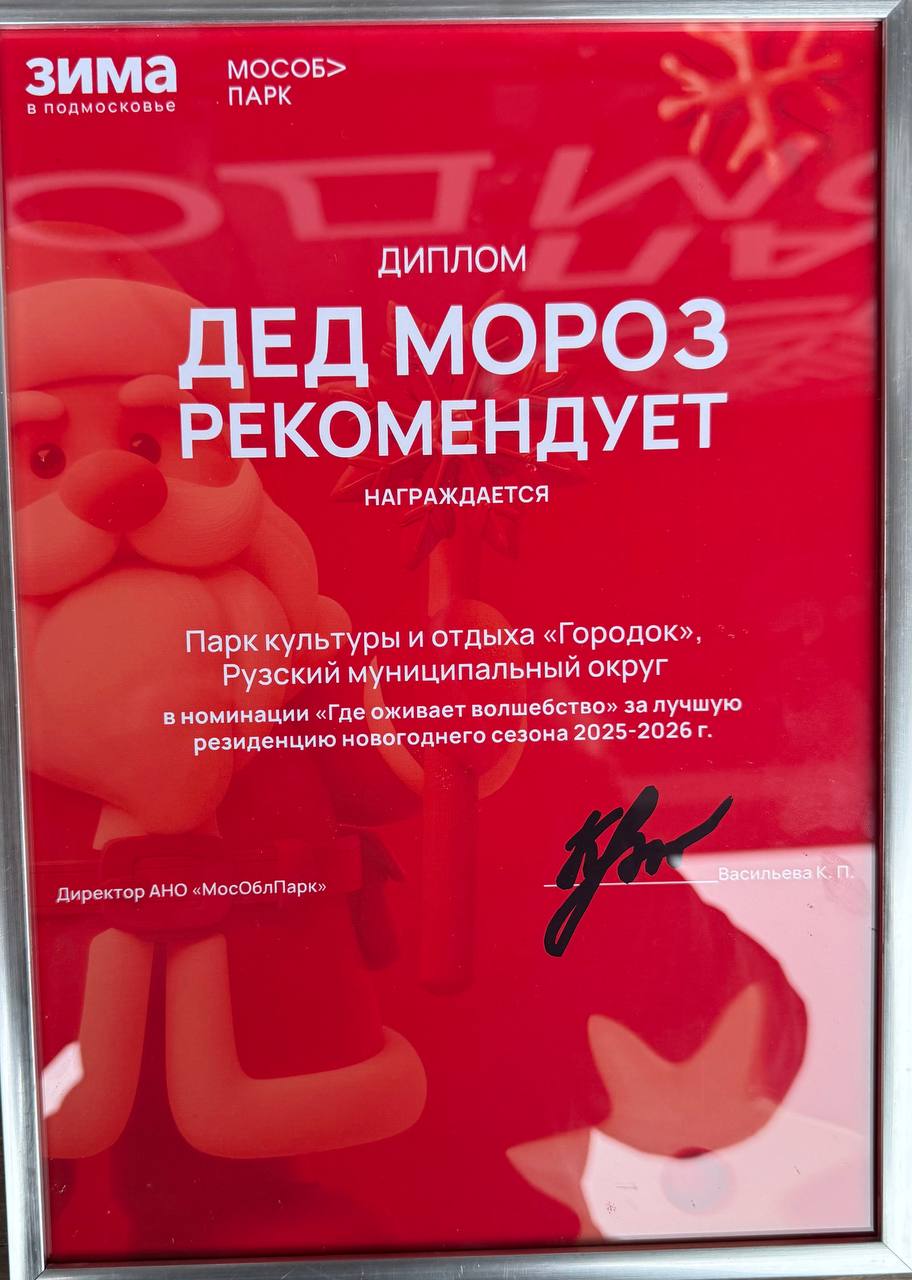 «По итогам 2025 года парк культуры и отдыха «Городок» принял участие в конкурсе Министерства культуры Московской области, знак качества «Дед Мороз рекомендует» и получил номинации в следующих направлениях новогоднего сезона 2025-2026 в Московской области: