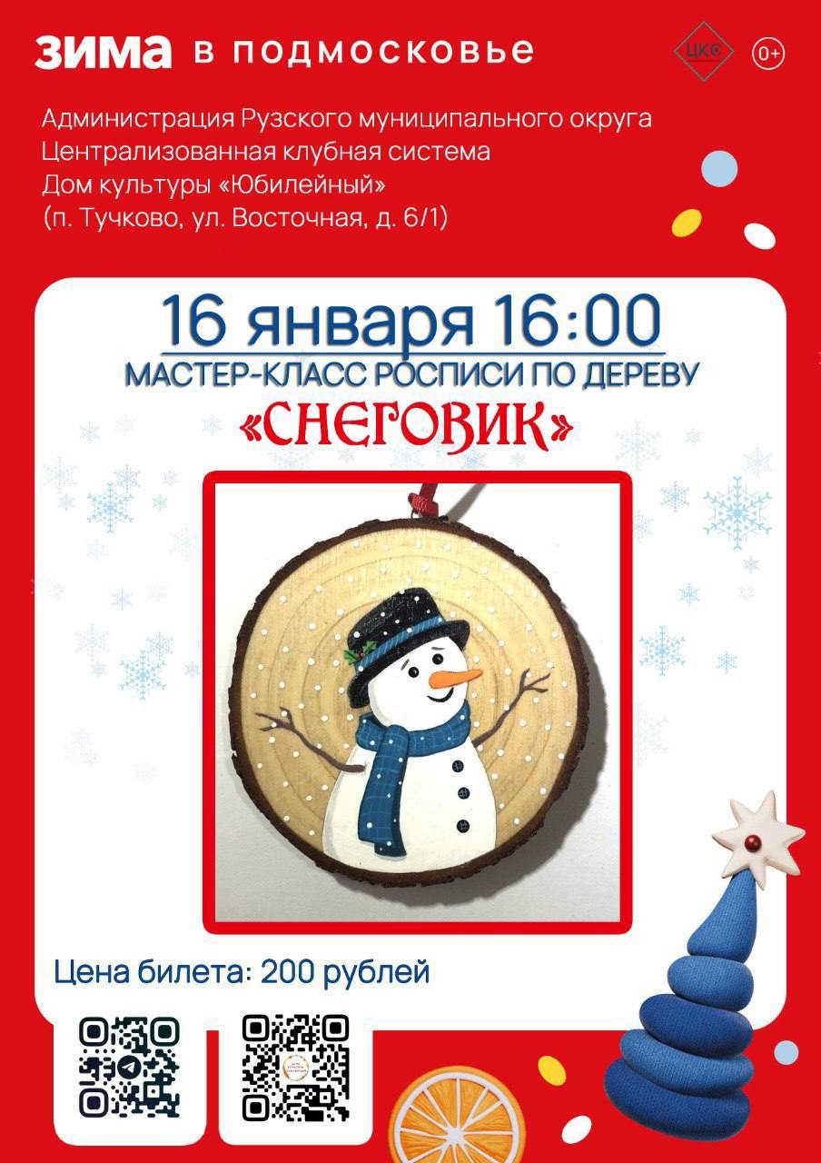 Дом культуры «Юбилейный» в Тучково приглашает всех желающих на увлекательный мастер-класс по росписи по дереву «Снеговик», 16 января в 16.00