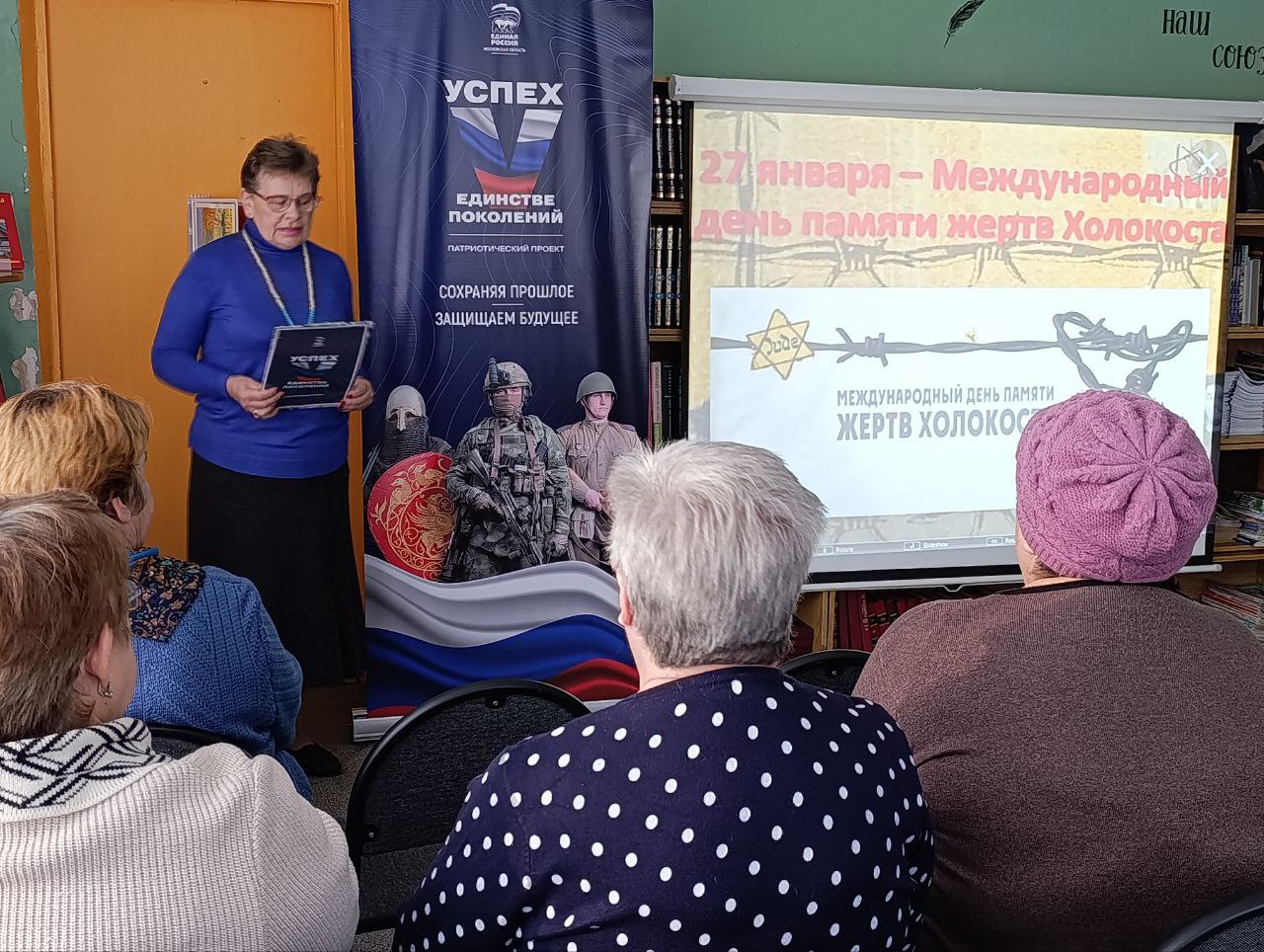 В преддверии этого события в Беляногорской сельской библиотеке секретарь первичного отделения партии «Единая Россия» Нина Харитонова провела час истории «Холокост: память без срока давности». Мероприятие было организовано в рамках партийных проектов «Успех V единстве поколений» и «Историческая память». Участникам показали слайд-презентацию, иллюстрирующую трагические страницы истории Холокоста. Собравшиеся вспомнили о миллионах невинных жертв, среди которых были евреи, славяне, люди других национальностей и убеждений, ставшие жертвами человеконенавистнической идеологии.