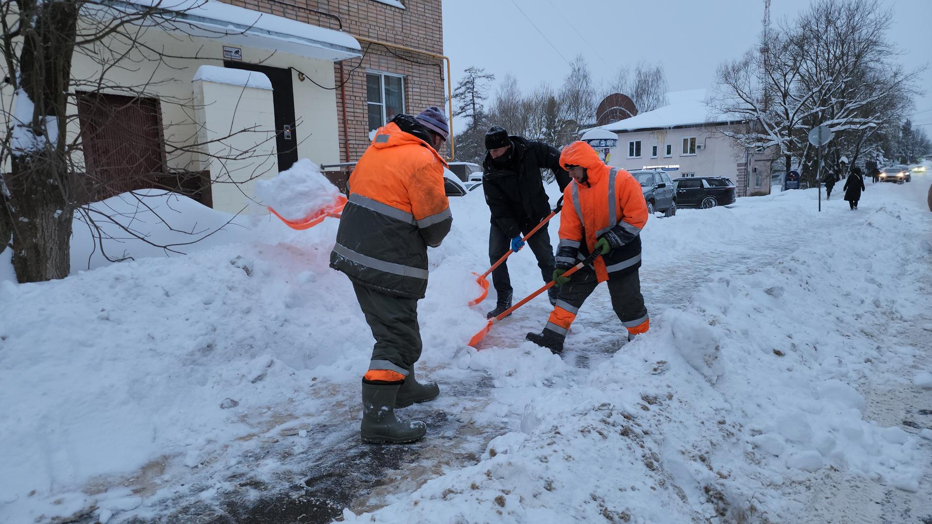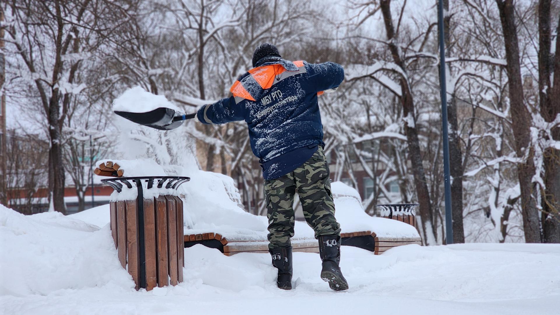 Коммунальщики Рузы расчищают центральные улицы и парки от снега