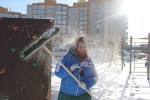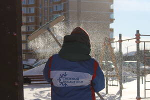 «На первый взгляд кажется, что такие объёмы снега убирать придётся несколько дней, тут площадь более 400 квадратных метров. Но мы работаем вместе, поэтому быстро справляемся», – говорит руководитель отряда «Путём Ломоносова» Ксения Урбанович.