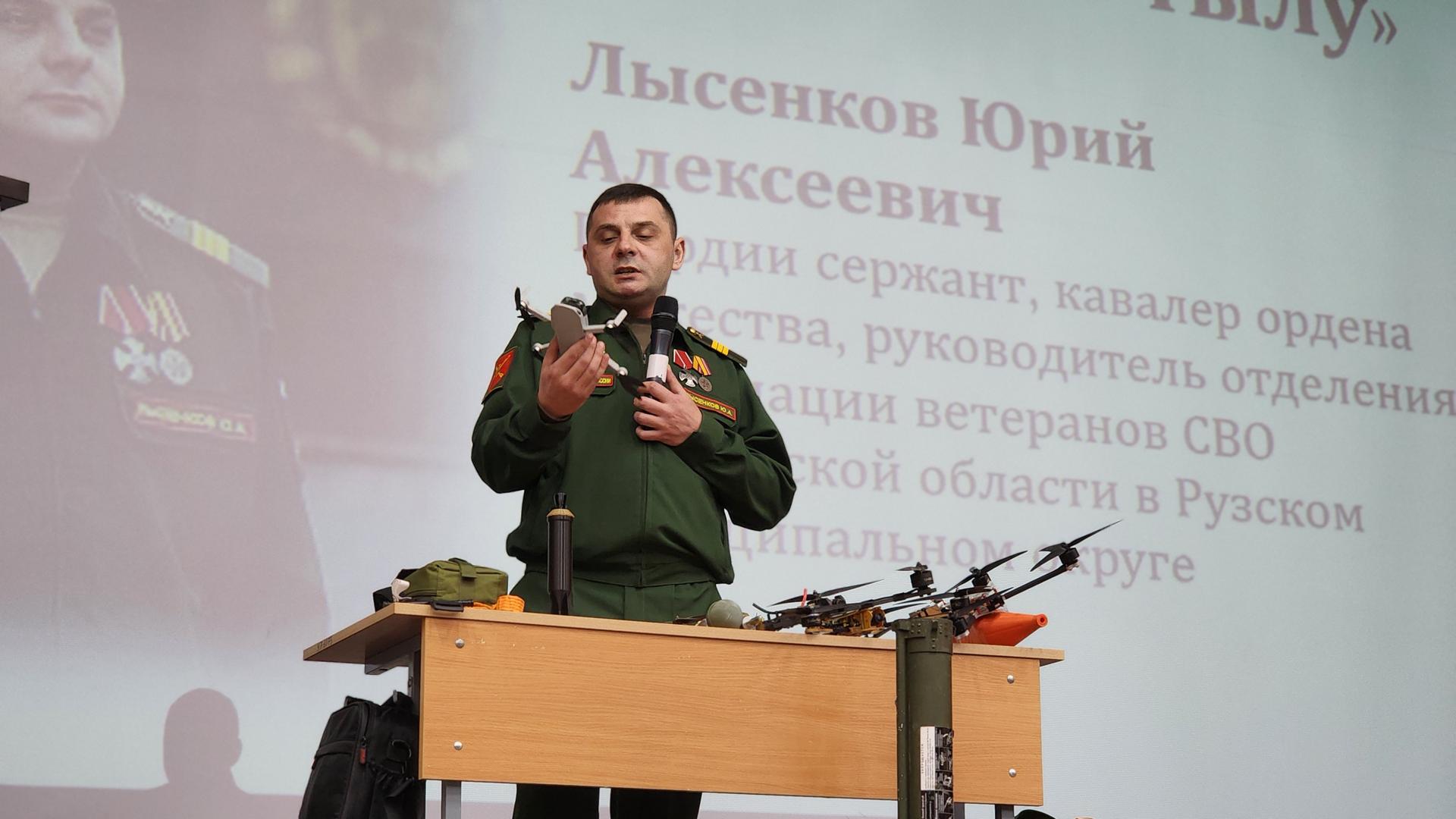 На столе — вражеские дроны с перебитыми лопастями, наскоро замотанные синей изолентой. Рядом — аккуратно упакованные аптечки для раненых. А за плечами — месяцы на поле боя. Так своим прошлым поделился с курсантами Московского областного филиала Университета МВД РФ имени В. Я. Кикотя руководитель Рузского отделения Ассоциации ветеранов СВО Юрий Лысенков.