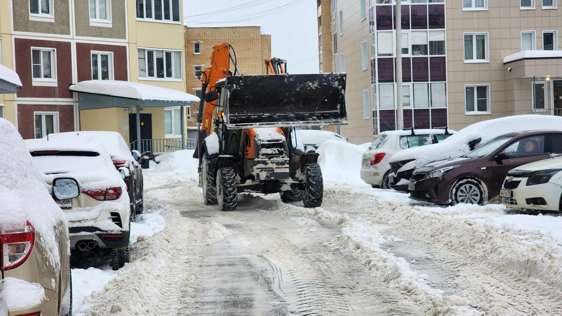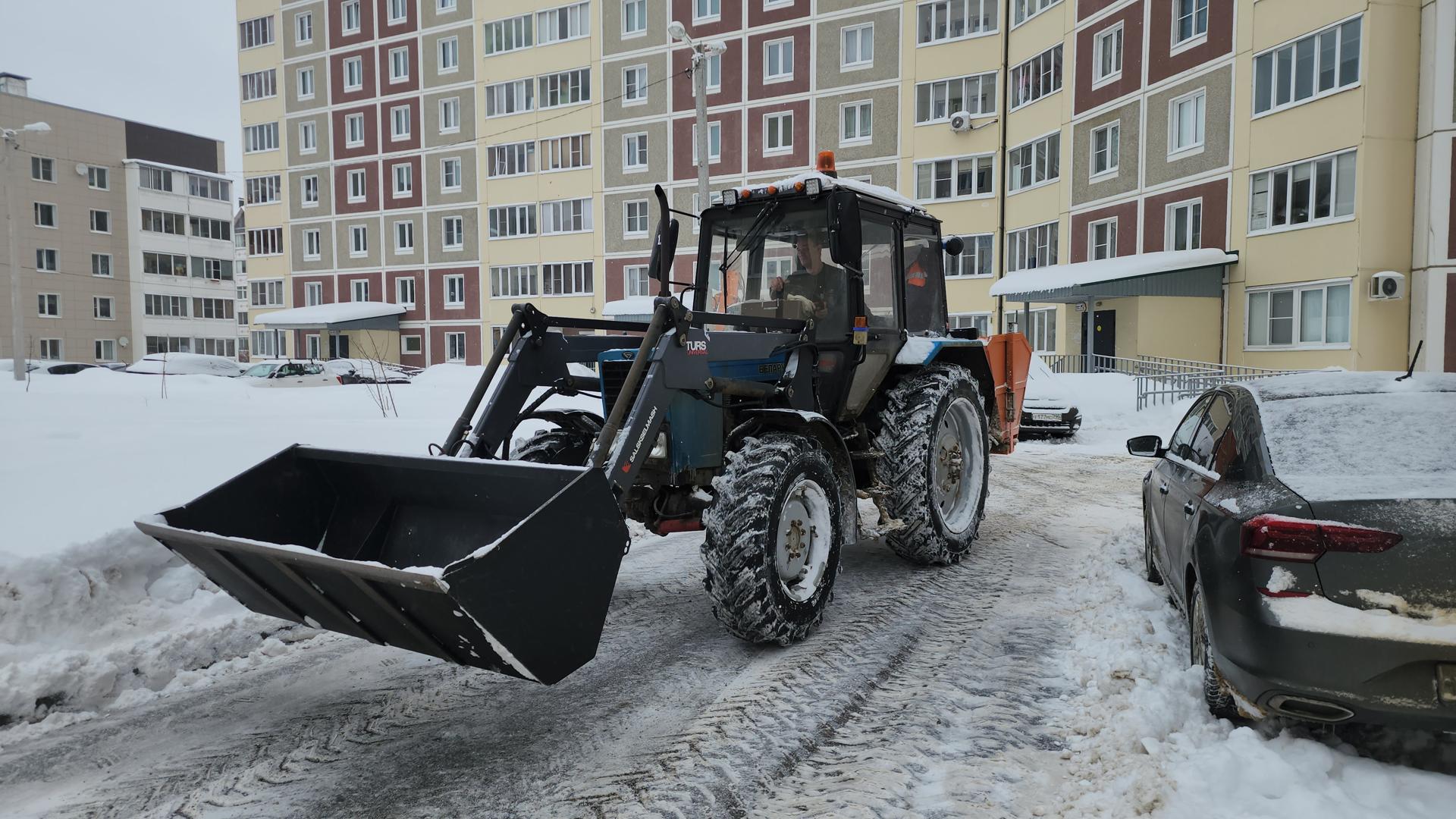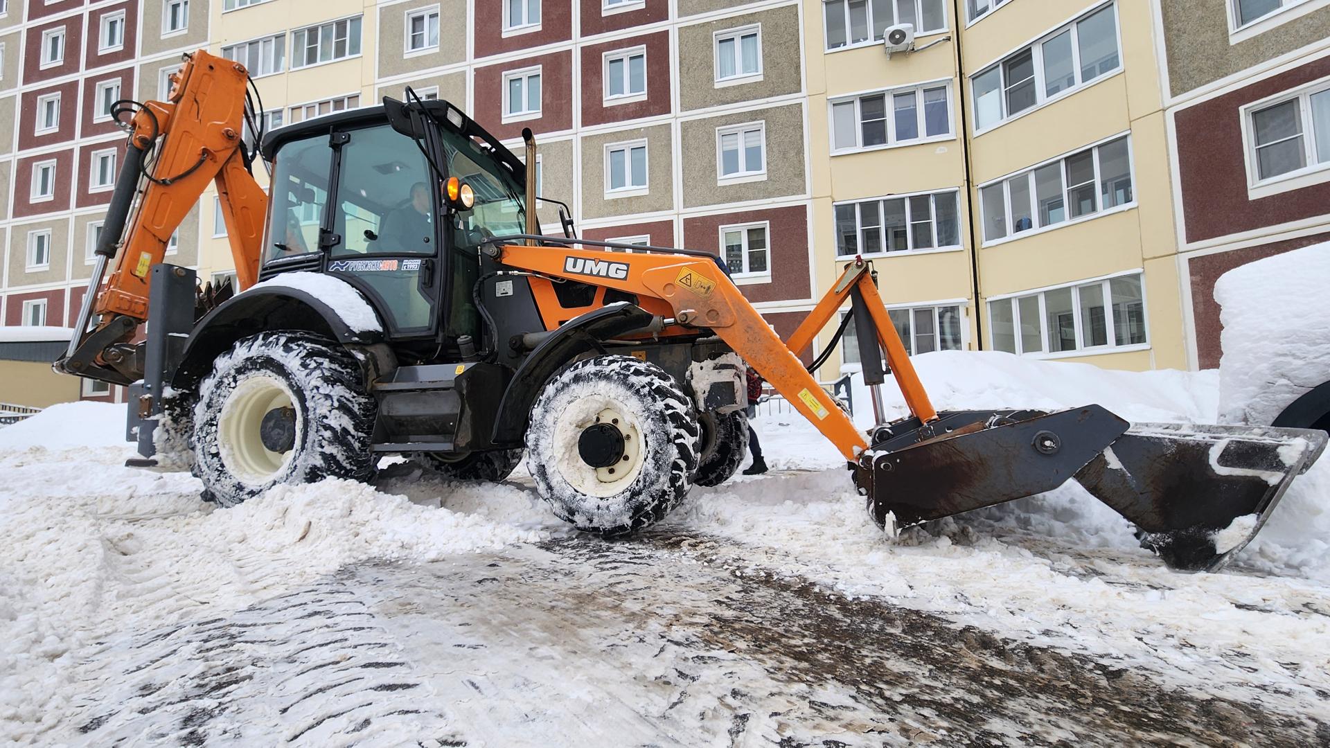 Коммунальщики Рузы убирают снег во дворе ЖК «Федеративный»