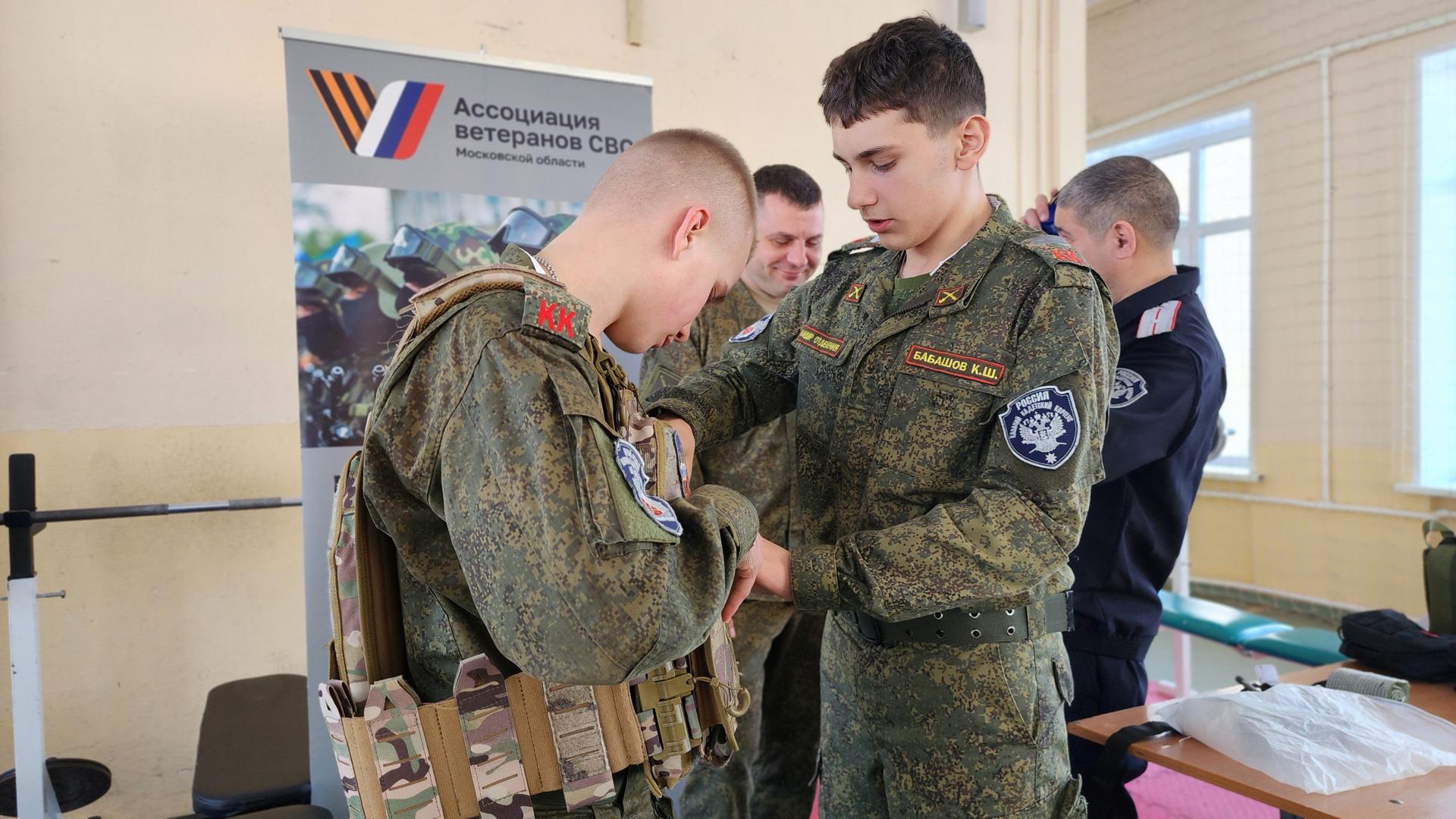 Самая захватывающая часть встречи прошла в формате живого мастер-класса. Каждый кадет смог примерить на себя настоящий бронежилет, ощутив вес экипировки солдата, и попробовал остановить условное кровотечение, накладывая специальный жгут. Ребята с неподдельным интересом осваивали навыки тактической медицины, понимая, что эти знания могут стать решающими.