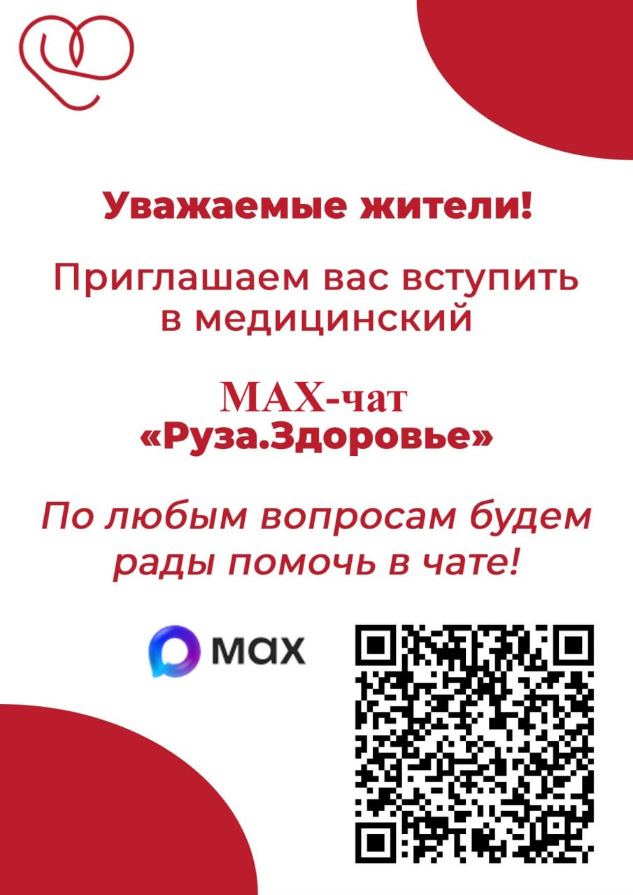 Приглашаем вас вступить в медицинский чат «Руза.Здоровье» в MAX.