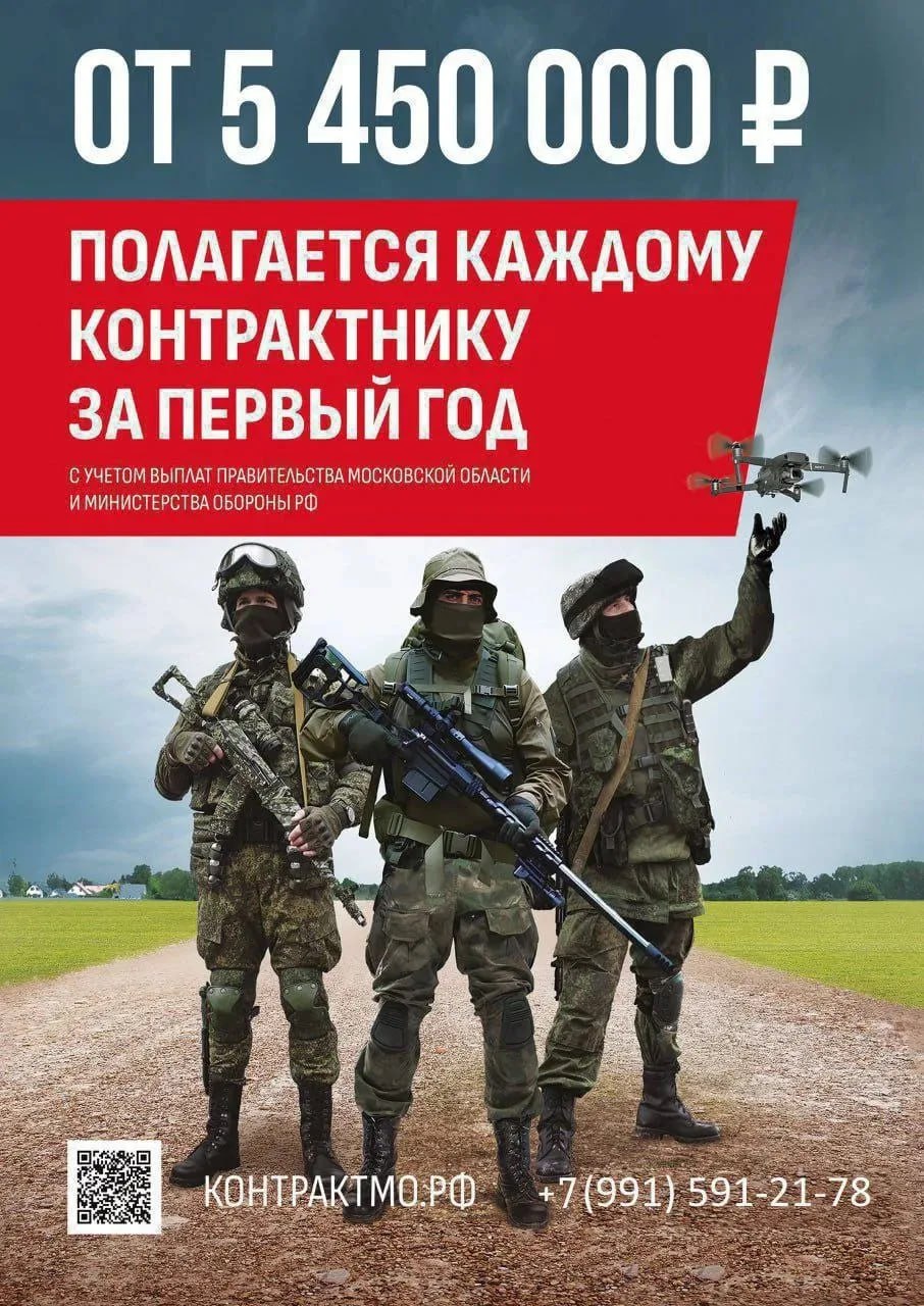 При заключении контракта военнослужащие за первый год теперь получат 5 450 000 рублей, серьёзную военную подготовку на территории Московской области, социальную поддержку», – написал Александр Анатольевич.