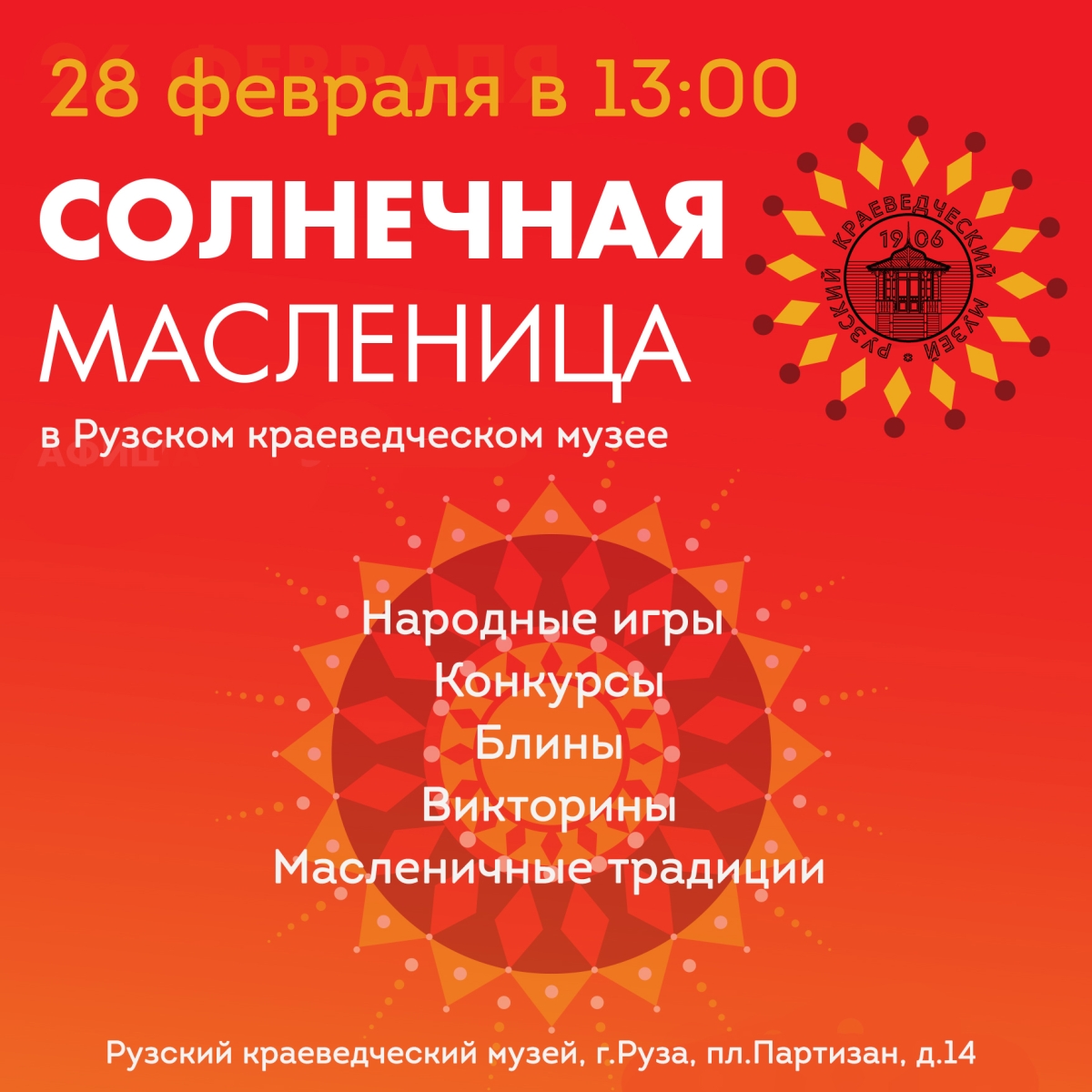 28 февраля Рузский краеведческий музей приглашает на праздничную программу, посвященную Масленице!