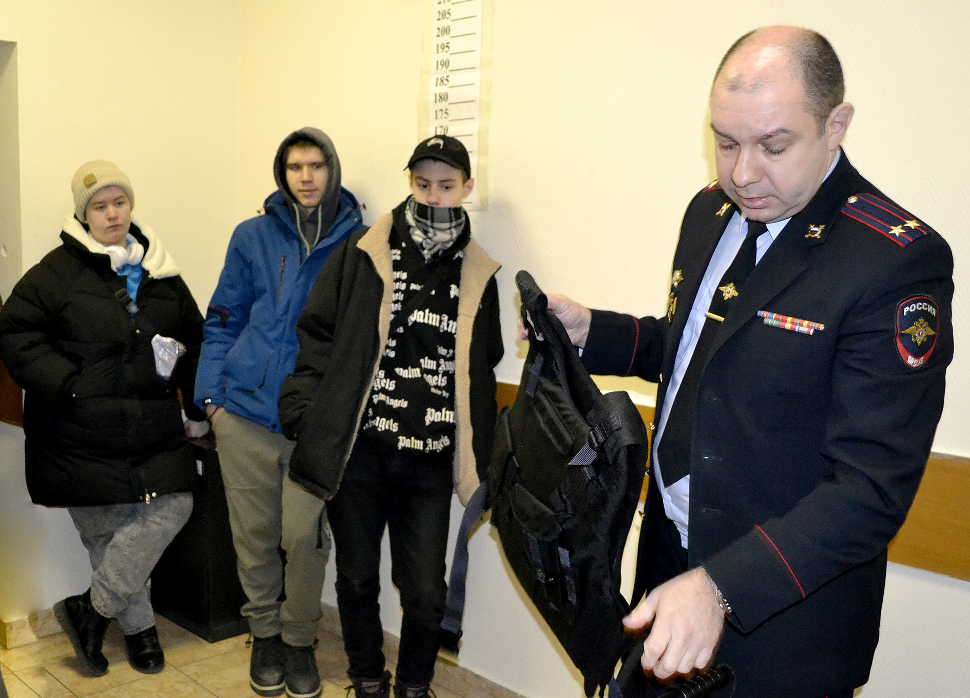 Максим Александрович показал студентам бронежилеты, защитные шлемы и резиновые палки, которыми пользуются полицейские во время осуществления охраны общественного порядка, объяснил их предназначение. Замначальника ОМВД также рассказал о порядке и сроках прохождения службы в органах внутренних дел, социальных гарантиях, правах и обязанностях сотрудников, правилах поступления в вузы полицейской направленности.