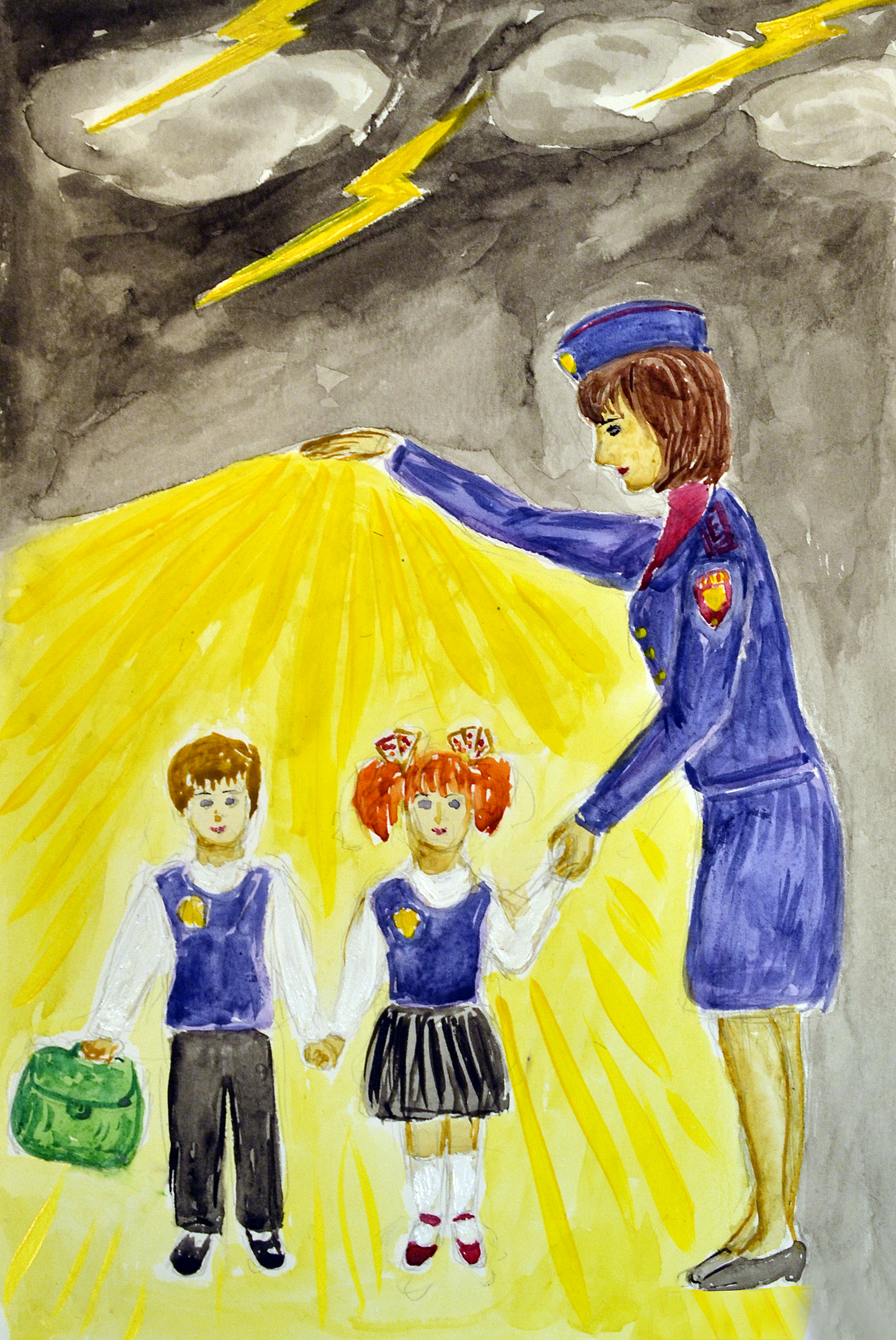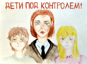 Рисунок «Дети под контролем» в исполнении Марии Бевзы из орешковского отделения Колюбакинской школы завоевал первое место среди учеников 8-9 классов.