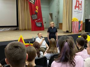Сотрудница полиции напомнила воспитанникам лагеря о том, что им делать запрещено: курить, нецензурно выражаться, драться, портить инвентарь, покидать без разрешения территорию оздоровительного учреждения. Необходимо слушаться вожатых и сотрудников администрации лагеря, в чрезвычайных ситуациях – звонить в экстренные службы и полицию, номера телефонов были указаны.