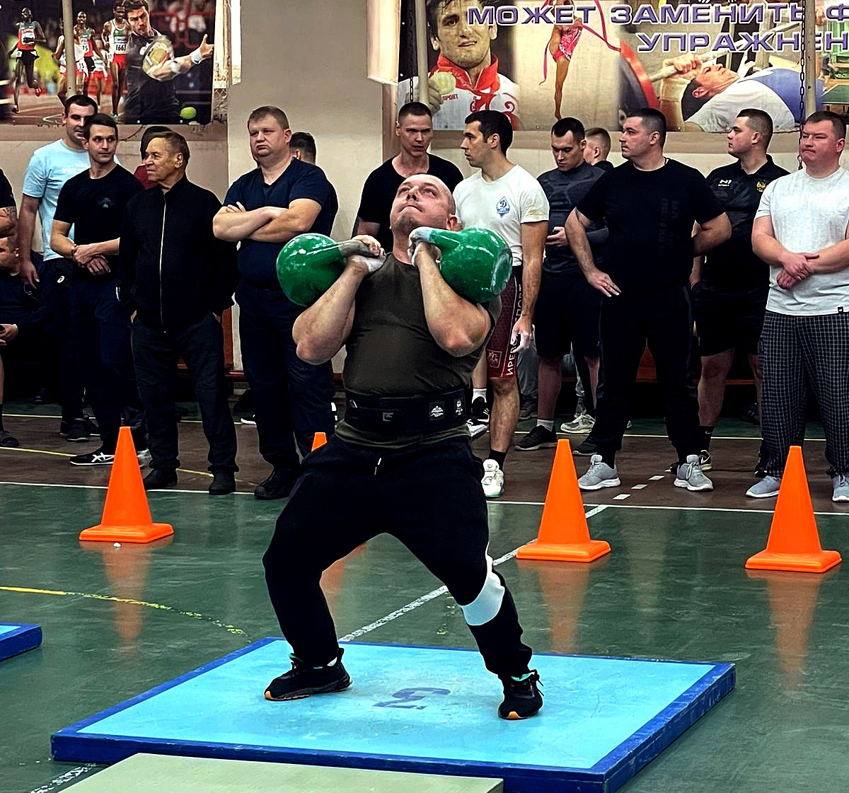 В весовой категории до 95 килограммов, в своей третьей группе, сержант полиции Сергей Бакаляс занял в толчке гирь второе место– поднял девять раз, уступив верхнюю ступень пьедестала почета своему коллеге из Серебряных Прудов Владимиру Ершову с его 25 толчками. В общем зачете Сергей Бакаляс – на 20-м месте. Кстати, золото соревнований в толчке гирь взял Андрей Субботин – представитель коллектива физической культуры из Голицынского пограничного института. Его результат был попросту недосягаем для соперников – 60 раз!