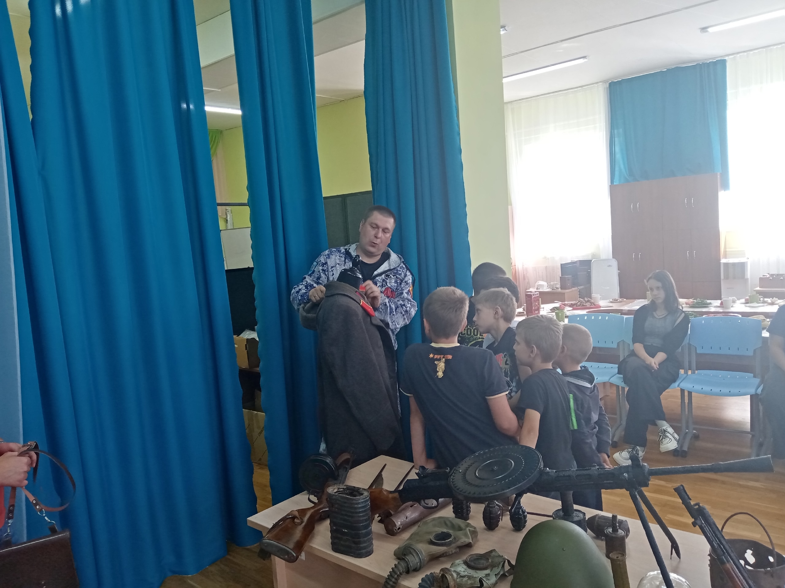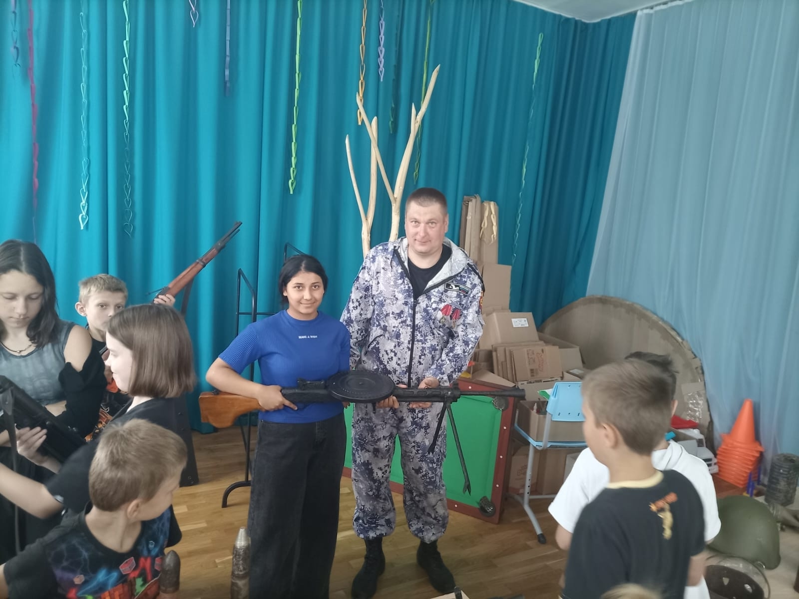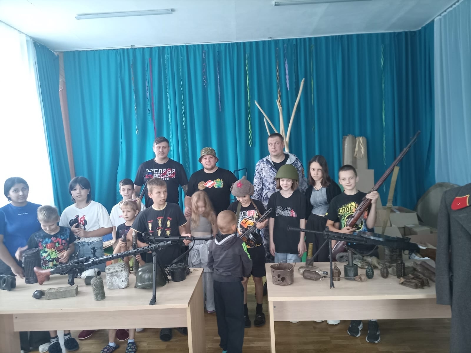 Дети с интересом рассматривали личные вещи и оружие советских солдат, обнаруженные в экспедициях. Мероприятие завершилось беседой о патриотизме и уважении к истории государства.