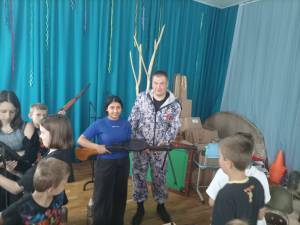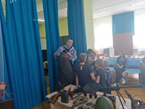 Росгвардеец рассказал ребятам о работе поисковиков, о быте солдат во время Великой Отечественной войны, а также продемонстрировал экспонаты, найденные в ходе поисковых работ на территории Московской и Калужской областей.