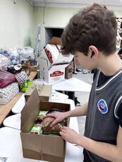 Ребята раскладывают собранное по коробкам и составляют описи, подготавливая партию к отправке бойцам. А ещё в свое свободное время волонтёры плетут маскировочные сети и изготавливают окопные свечи. И сети, и свечи обязательно помогут солдатам выполнять все поставленные задачи.