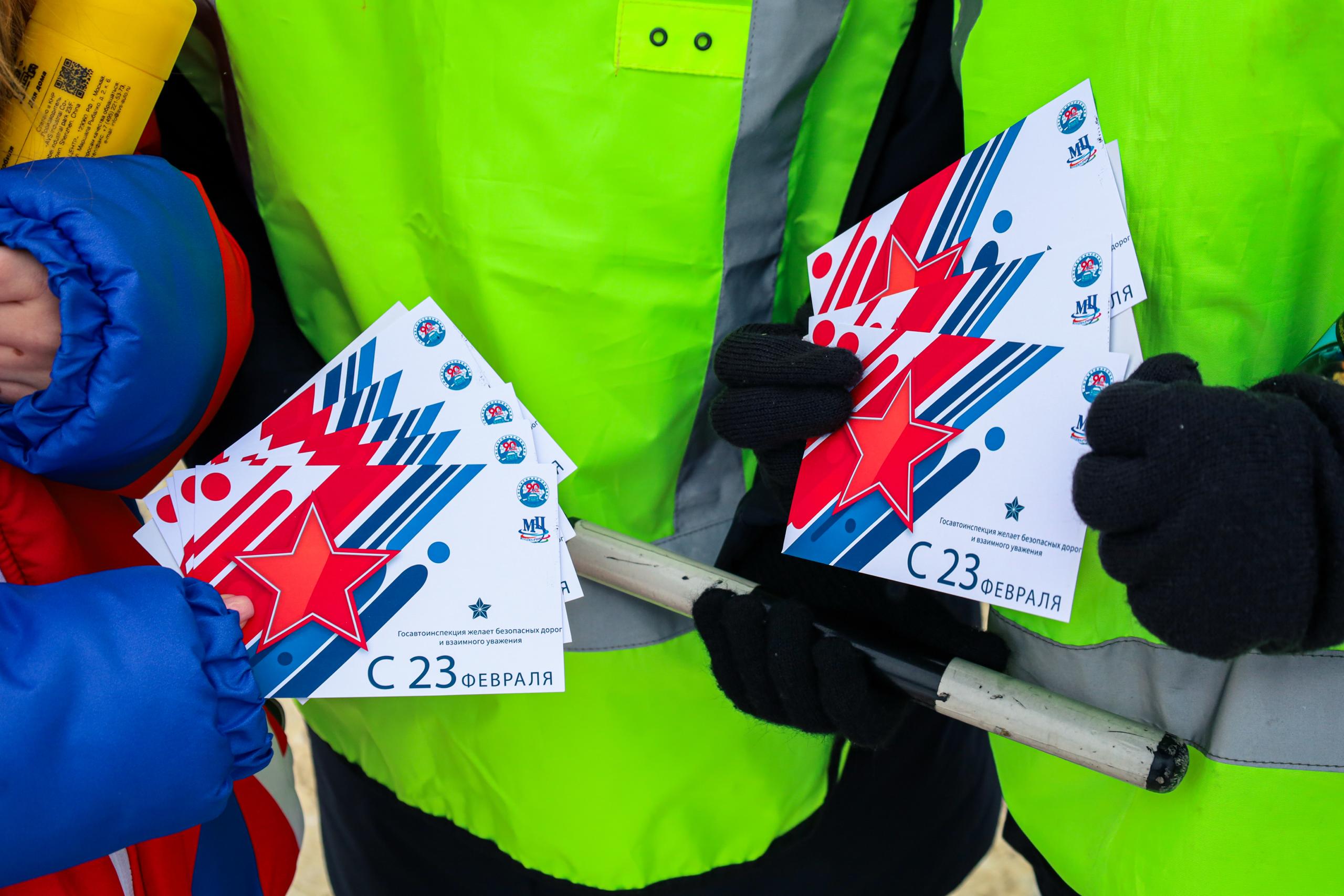 В Рузе сотрудницы Госавтоинспекции и волонтёры поздравили водителей-мужчин с Днём защитника Отечества